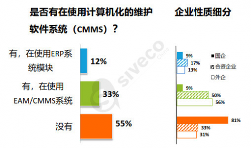 超过半数的被调查者(其中超过80%国有基础设施或公共事业企业)表示从未使用过CMMS系统。而即便企业已落实维护管理控制机制和工具(如定期召开维护改进会议、制定明确的绩效指标等),却仍无法达到符合决策支持的预期效果。