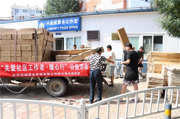 众志成城、抗击疫情,为切实做好疫情防控工作,缓解社区一线人员工作压力,营造良好的社区环境。7月25日,北京浩城嘉业助力高米店街道办事处走进大兴片区,共同开展了“关爱社区工作者·暖心行”公益活动。当天,北京浩城嘉业装饰有限公司向高米店街道办事处工作人员捐赠爱心防疫物资遮阳帐篷52顶、饮用水200件,用实际行动承担了企业应尽的社会责任。