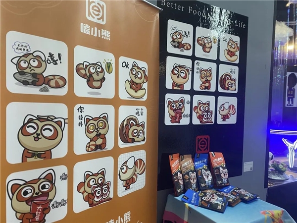 ▲嗑小熊还为展览现场带来了小炒素肉、小香豆干、麻辣素牛排等美味零食