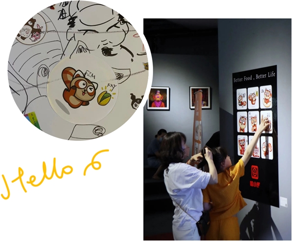 ▲在展览现场,嗑小熊的形象深受小朋友们喜爱,争相模仿描绘