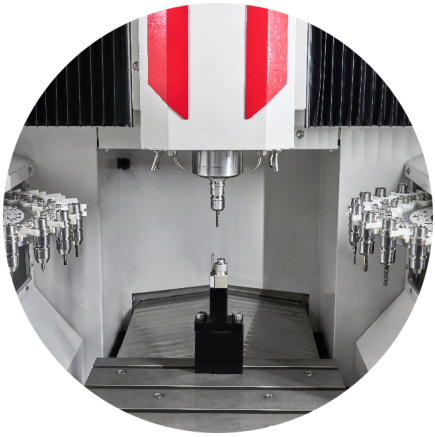 UHB-400系列机床可以选择配置四轴或五轴转台,实现一次装夹多角度加工,减少设备投入成本。所配备的五轴转台由汇专自主研发,实现五轴联动,尺寸迷你,工作台盘面高度只有105mm,可配置零点快换。
