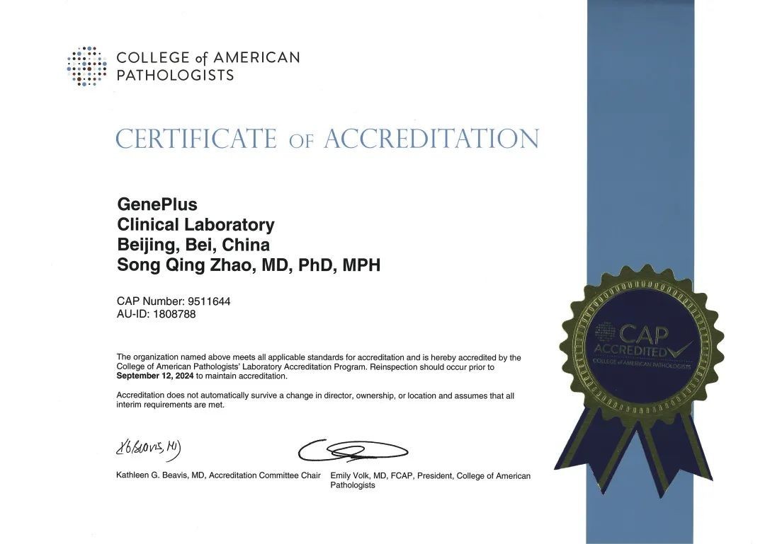 近日,经过一系列详实的考核及专家评审,北京吉因加医学检验实验室通过美国病理学家协会(College of American Pathologists,CAP)专家复审,吉因加再次获得这一国际权威实验室组织的认可。复审得到权威认证,彰显着了吉因加持续领先国际的检测水平和质量管理体系。