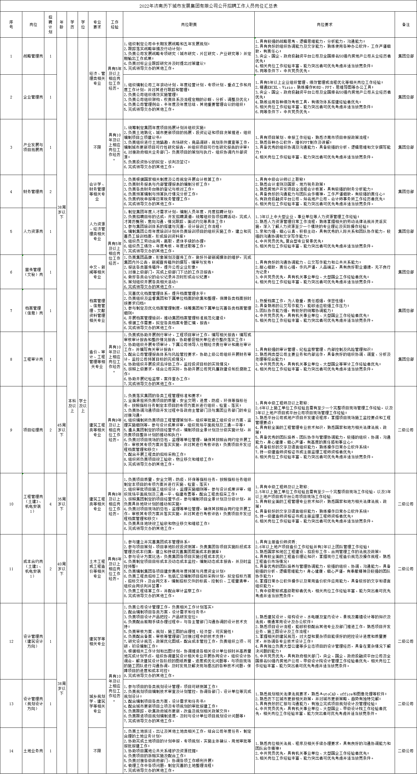 (一)岗位信息及要求详见《2022年济南历下城市发展集团有限公司公开招聘工作人员岗位汇总表》(附件)。