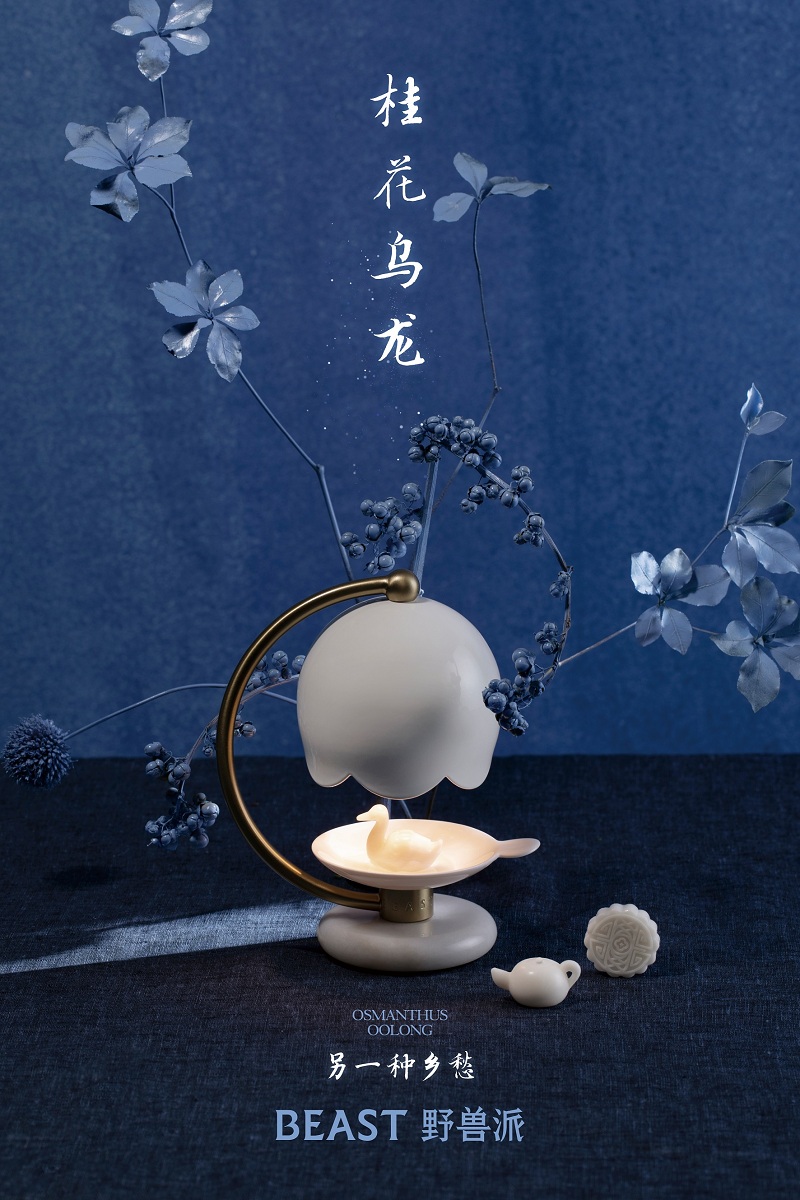 闲潭映桂影,明月照乡愁。中秋将至,高端艺术方式品牌野兽派倾心呈现——中国新香,桂花乌龙。以“另一种乡愁”为主题,青花瓷为灵感,注入国人最为熟稔的桂花香调,集香水/家用香氛/家居/花艺/瓷器为一体,将东方韵味妙趣呈现,带来独具一格的沉浸式体验。