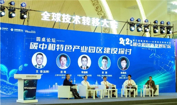 在随后进行的圆桌论坛上,宝地资产总裁王语、上海市科学学所产业室主任庄珺、中国宝武中央研究院副院长李自刚、中建上海设计院绿建院助理院长梁骁、迈科技创始人兼CEO林贤杰围绕碳中和特色产业园区建设相关问题进行了讨论。