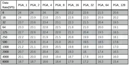 对于衡器应用来说,最重要的参数为峰峰值噪声或者位无噪声分辨率。有效值噪声乘以6.6倍位峰峰值噪声。