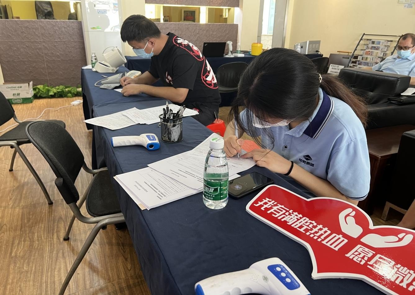 参加献血活动的中务员工们在填写登记表