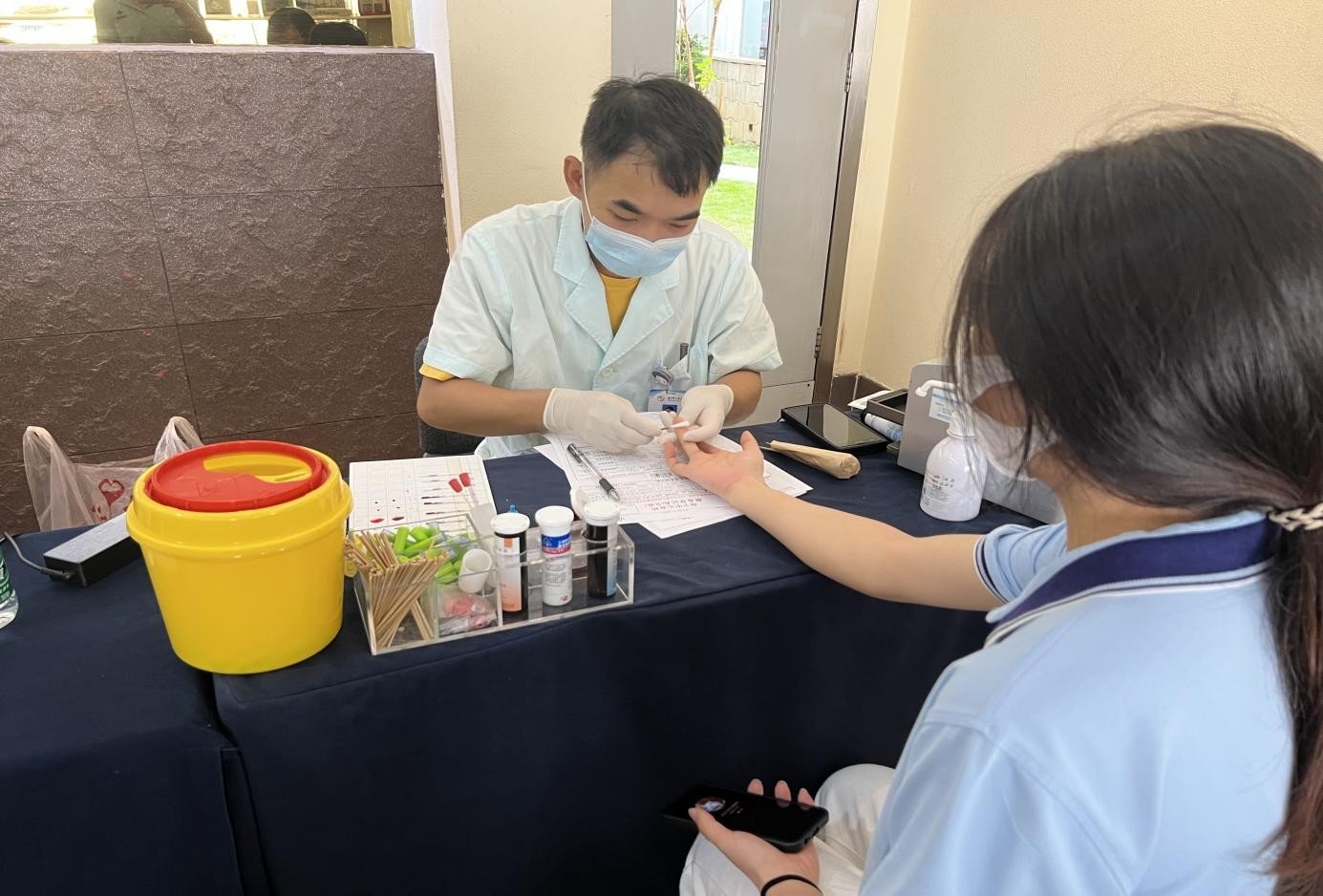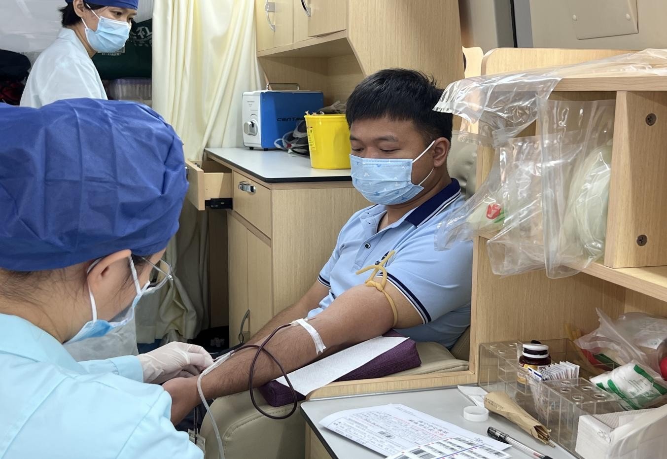 中务员工代表在接受献血前的必要检查