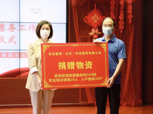 安安整理自成立以来,一直秉承公益心,做公益事的情怀,传播整理收纳的正理念,帮扶就业,改善国民生活品质与素养,创造人民向往的美好生活。在此次的捐赠活动中,安安整理捐赠职业技能培训课程合计1200课时,私人定制整理入户服务20户,成人护理纸尿裤360包,合计金额20+万元。