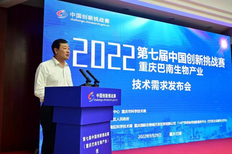 9月29日,重庆市巴南区首次申办的第七届中国创新挑战赛(巴南生物产业)技术需求发布会在重庆国际生物城拉开序幕,此次挑战赛,巴南将围绕生物医药产业专题开展赛事,巴南区副区长杨亚平,巴南区科技局、重庆国际生物城主要负责人,院校专家团队以及企业代表出席活动。会上共发布生物产业技术需求26项。
