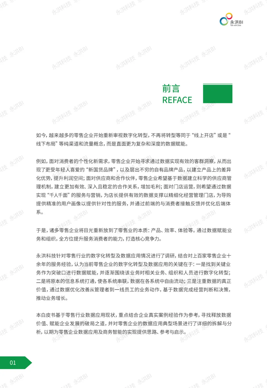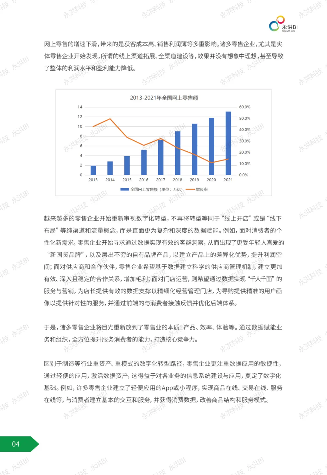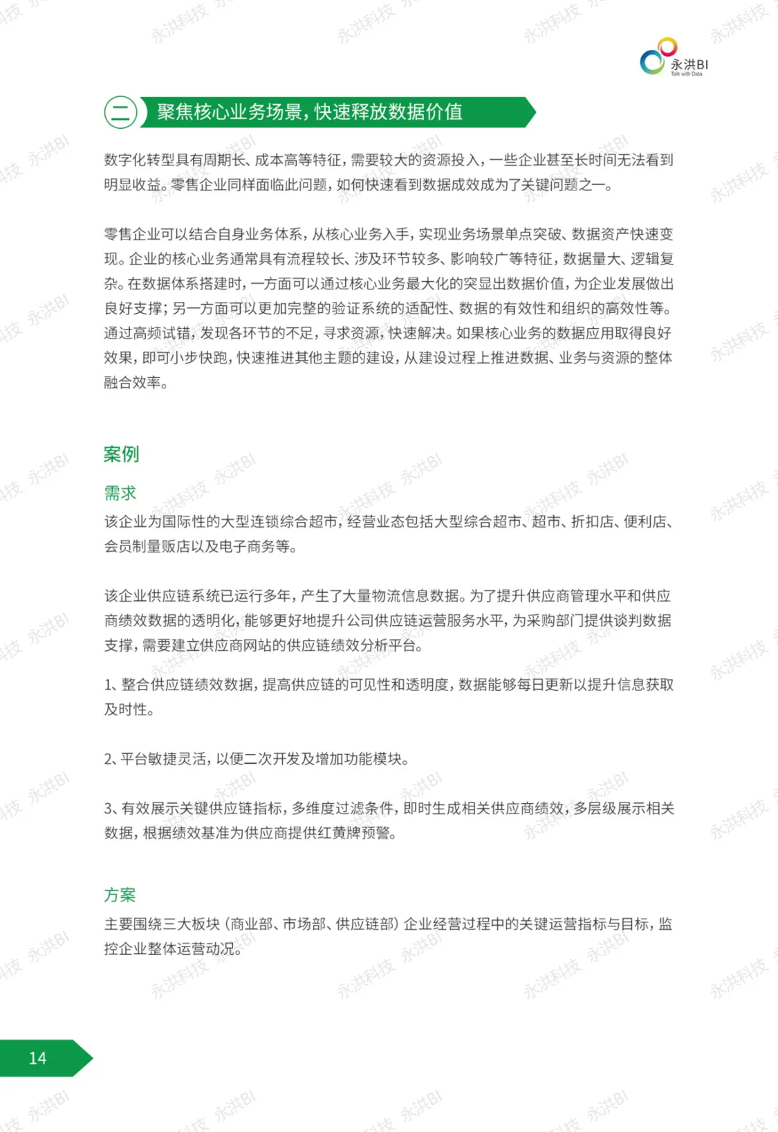 对零售业BI应用常见的8大场景进行分析,以案例的方式解决零售企业在各个场景下数据赋能业务难、数据价值不突显的问题。