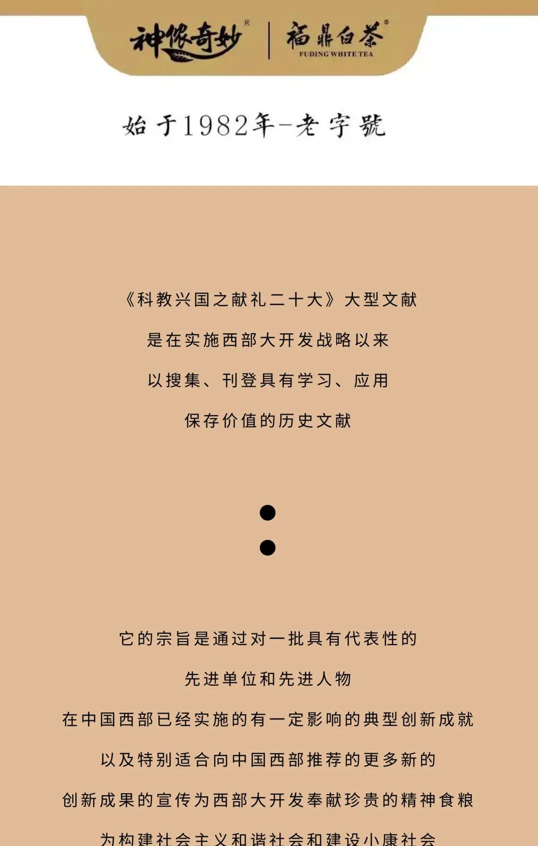 热烈祝贺——福鼎白茶知名品牌“神侬奇妙”入选科教兴国文献