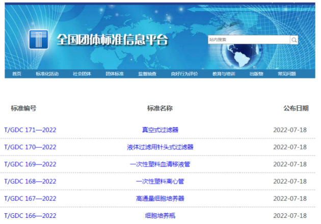 近日,由广州洁特生物过滤股份有限公司牵头制定的《细胞培养瓶》《高通量细胞培养器》《一次性塑料离心管》《一次性塑料血清移液管》《液体过滤用针头式过滤器》《真空式过滤器》6项生物实验室耗材系列团体标准在国家官方平台获得正式发布。该6项标准由洁特生物作为牵头单位,联合泰坦科技,诺唯赞生物,海狸生物等多家行业企业,以及中科检测、广医三院等单位联合制定,来自广东省科学院微生物研究所等多家单位组成的专家组对标准进行专业审议,标准最终通过专家审定,并成功获批发布。