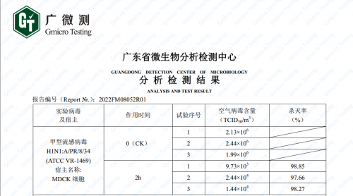 来自广东微生物分析检测中心的权威检测报告显示,光莆股份推出的这款可见光杀菌护眼灯,流感病毒杀灭率高达95%以上。这也是国内首款高效杀灭流感病毒的可见光杀菌护眼灯,相较于常规的紫外光杀菌,可见光杀菌更健康安全,将具有广阔的应用前景。
