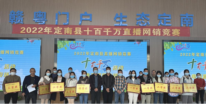 11月26日,由定南县商务局主办、赣州菜鸟产业运营服务有限公司承办、定南县新媒体电商协会协办的“定南县十百千万直播网销竞赛活动”圆满落幕。活动以“十百千万”行动为抓手,充分发挥电商直播带货作用,紧跟产业发展趋势,推动数字经济创新,进一步激活定南网络销售新动力,助推产业转型升级,推动全县数字经济提质增效,打造高质量发展的新引擎。