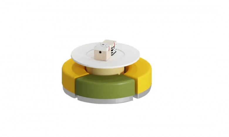 手工桌桌面双圆式设计,内部向下凹陷,用于玩具暂时性摆放,桌边圆弧造型,提高安全性。