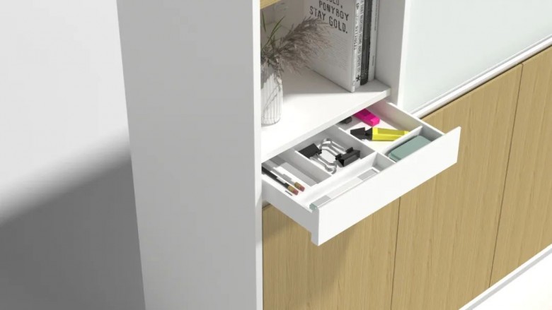 功能至上,高效办公、产品设计灵感源于对当下职场办公环境的细致观察。会议是当下职场解决问题最高效的方式,大多企业会议室的的使用都趋于过饱和,且小型会议开展不便,无形中制约了工作效率;灵动文件柜的设计融合了储物与即时会议的功能,创造出一种便捷、舒适及人性化的办公空间。
