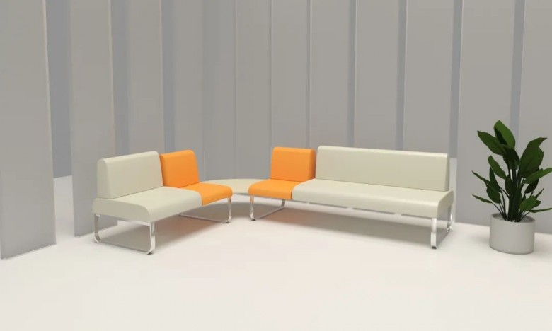 弧形坐凳与圆形坐凳底座不锈钢装饰,坐垫采用皮质,弧形可进行拼接存放,规整且节省空间;木马形象可爱,迎合小孩子的喜好。