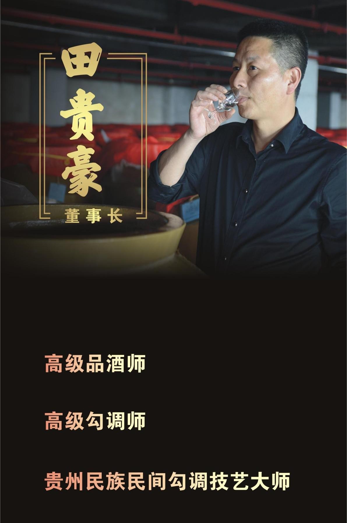2012年田贵豪获得中国食品工业协会颁发的国家白酒高级勾调师、品评师资格、2018年田贵豪获得省民宗委、省文联联合颁发的“贵州民族民间勾调技艺大师”称号。