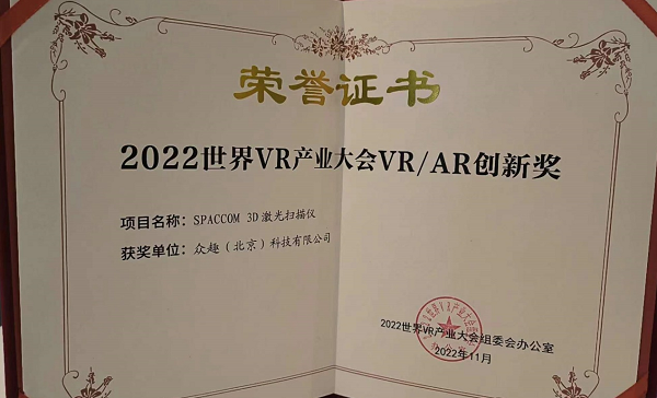 优秀的工业设计、出色的产品性能和底层技术的积累,让SPACCOM X1从数百款软硬件产品中脱颖而出,被2022南昌世界VR产业大会授予“VR/AR创新奖”