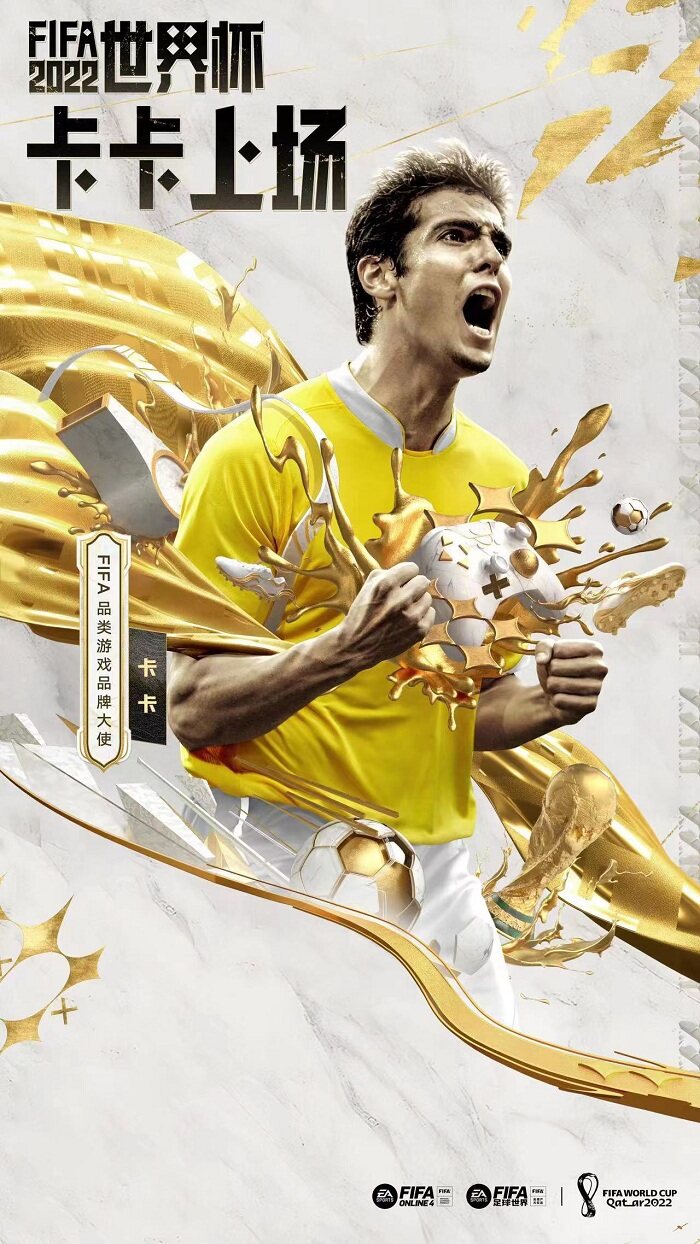 2022年11月,伴随世界杯哨声在卡塔尔吹响,2022FIFA世界杯官方授权游戏《FIFA足球世界》手游与《FIFA Online 4》端游同步上线世界杯专属活动,首期联动内容特邀世界足球先生卡卡助阵,带来全新震撼玩法。