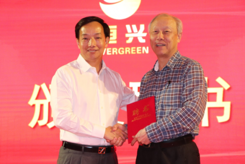 右为中国工程院院士李德发、左为恒兴董事长陈丹