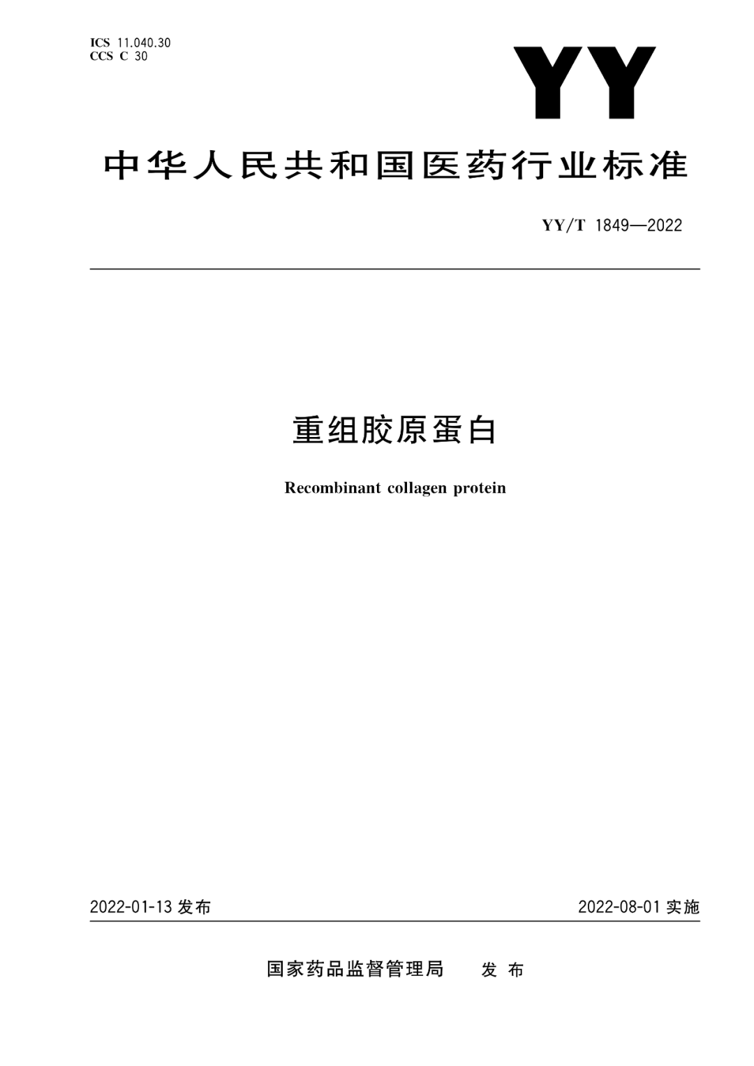 胶原蛋白是人体中含量最多、分布最广的功能性蛋白,在人体中参与多种生命活动,由于胶原蛋白独特的理化性质和功能被广泛应用在保健食品、化妆品、生物医学等领域。这一成分的应用日益广泛,也使众多企业迎着发展热潮,纷纷瞄准这一赛道进行发力,重组胶原蛋白行业也进入了快速发展期。为了规范和助力行业发展,2022年8月1日,中华人民共和国医药行业标准YY/T1849-2022《重组胶原蛋白》正式发布并实施,其中,重组胶原蛋白行业先行者巨子生物作为主要起草单位参与了此次行业标准的制定。