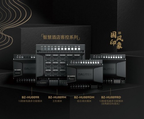 『国风印象』智慧酒店客控系列独具八大核心优势:颜值上,模块突破了传统结构设计,采用了比市面产品更小号的尺寸,更轻便的重量;总线防冲突,控制无负担,也使得该系列将高性能与稳定性双兼;全新D-line调光解决方案,采用独家研发直流调光技术,轻松实现不用放信号线的”DALI“方案;全入住流程空调管理系统,无缝对接酒店PMS管理系统,可以在不同房态下自动管理空调运行状态,让客人入住更舒心;全系产品支持过零保护,16A磁保持继电器应用,以最小电流点亮空间之美;调试再也无需繁琐编程,积木式配置控制功能,只要简单勾选组合即可实现控制逻辑;人性化面板背光逻辑,支持智能起夜场景,打造你想要的最佳睡眠状态;该系列产品更是邦奇智能秉承对产品的匠心坚持,品质精研的最好回答。