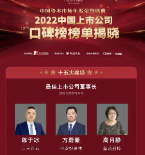 12月28日,由每日经济新闻主办的“2022第十二届中国上市公司口碑榜”揭晓,蓝晓科技(300487)荣获“新能源、新材料产业最具成长上市公司”,公司董事长高月静博士荣获“最佳上市公司董事长”。