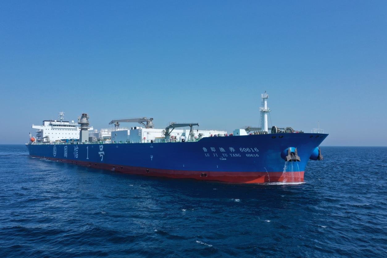 青岛国信蓝谷公司整合中船集团、国家海洋实验室、中国水科院渔机所等单位优势,投资建造全球首艘10万吨级深远海智慧养殖工船“国信1号”,充分利用深远海优质资源,构建覆盖全产业链的新型产业模式,带动船舶设计及建造、深远海养殖等多个产业融合发展。