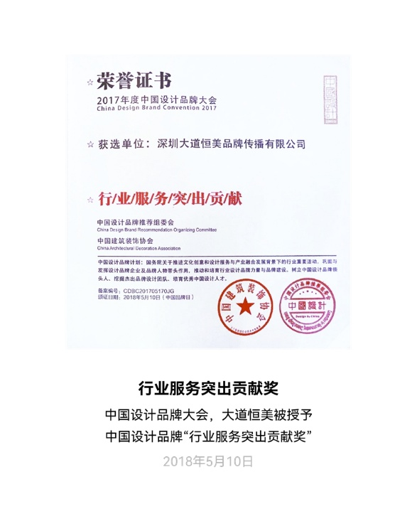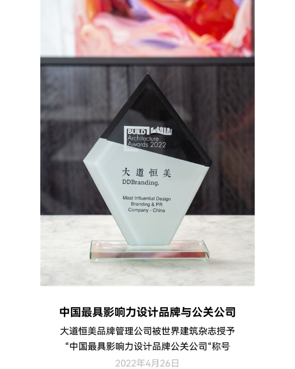 我们踏实前行,助力并见证多个设计公司实现价值与梦想,2018年5月10日,荣获中国设计品牌 “行业服务突出贡献奖”。2020年8月22日,荣获金堂奖“产业推动者”赞誉。2022年4月26日,荣获世界建筑杂志“中国最具影响力设计品牌公关公司”称号。