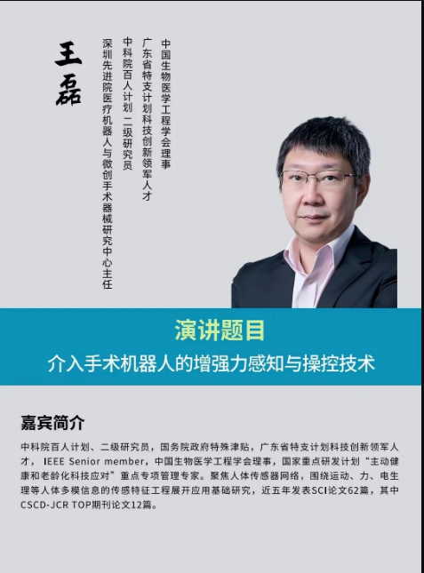 王磊 深圳先进院医疗机器人与微创手术器械研究中心主任 中科院百人计划、二级研究员