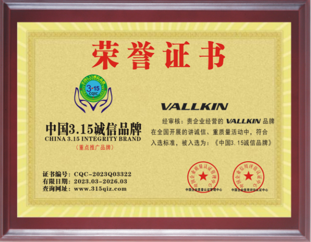 2023年3月VALLKIN腕表取得优秀的成果,荣获中国3.15诚信品牌