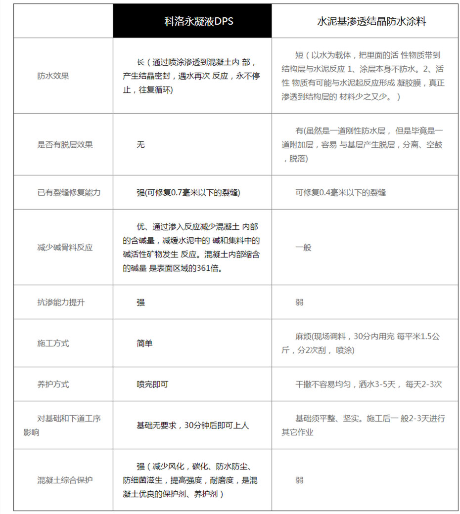 1、科洛水性渗透型无机防水剂与水泥基防水涂料优劣对比