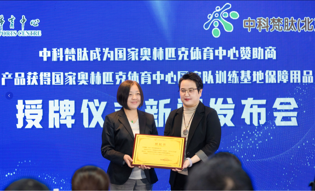 3月31日,中科梵肽(北京)科技发展有限公司及该公司生产的骨轻松产品成为国家奥林匹克体育中心赞助商及国家队训练基地保障用品授牌仪式新闻发布会在国家奥体中心体育场新闻发布厅举行。国家奥体中心副主任柳屹、科学训练服务处处长王雷、产业发展处处长谢征、竞走奥运冠军王丽萍、羽毛球奥运冠军高崚、中科梵肽(北京)科技发展有限公司董事长曲词、中科科技创新发展研究院应用中心主任单崇峰、九州通科技孵化器陈成龙、汇菱国际资本执行董事周家翘、煜森资本管理合伙人梁志、四川全橙健康管理有限公司董事长张凤玲、北京华馥律师事务所主任赵京京等体育、健康、医疗、科研机构、法律等行业代表以及作为承接项目落地地方政府的丰台区经信局、眉山市政府驻京联络处也派代表出席了本次发布会。