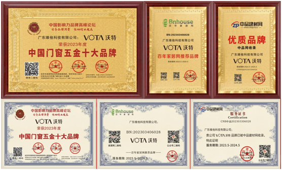 沃特门窗五金中国门窗五金十大品牌是广东维他科技有限公司其下的门窗五金品牌,是专业门窗五金制造的实业公司,公司位于广东省肇庆市金利镇,始创于2003年,先进的生产设备和强大的专业团队,已成为强劲实力的系统门窗五金研发生产企业。如今,公司通过了ISO9001质量体系,相关产品获北京国家幕墙门窗监督检测中心认证、AT世界建筑设计与技术·北极星,奖,同时,也是广东省门业协会副会长企业单位。