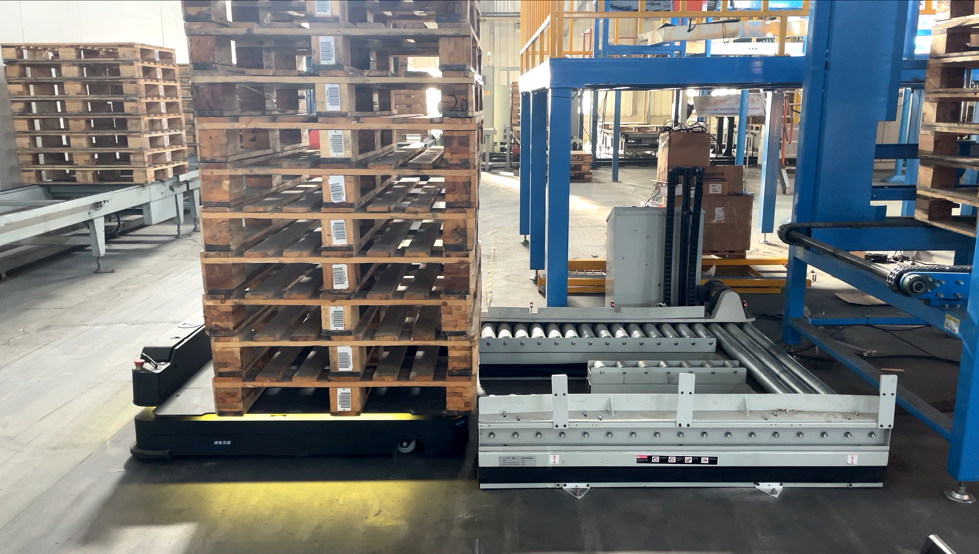 捷象灵越项目团队基于对客户需求的深度洞察,提供了“前移式托盘机器人JE 1200E+托盘升降输送机LIFT 1200E+JMS数字化生产管理平台”的柔性化综合解决方案。在工厂环境改造降至最小化的同时,通过托盘升降输送机与生产输送线与立体库的灵活对接,实现了对成品下线、存储、出库、搬运等环节的全面人工替代;通过系统软件算法能力优化物流模式、升级信息系统等措施,提升了仓储和物流效率。