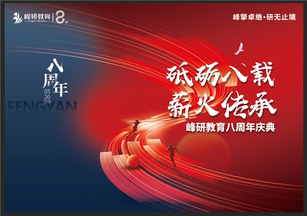 新起点,再起航。值此峰研八周年之际,峰研教育将开展八周年庆主题活动,邀请上岸学员、学生家长、行业教师,畅聊考研,分享考研新趋势,新发展,剖析考生新需求、新愿景。同时将为2023级上岸学员进行颁奖,激励学员不断接续前行。