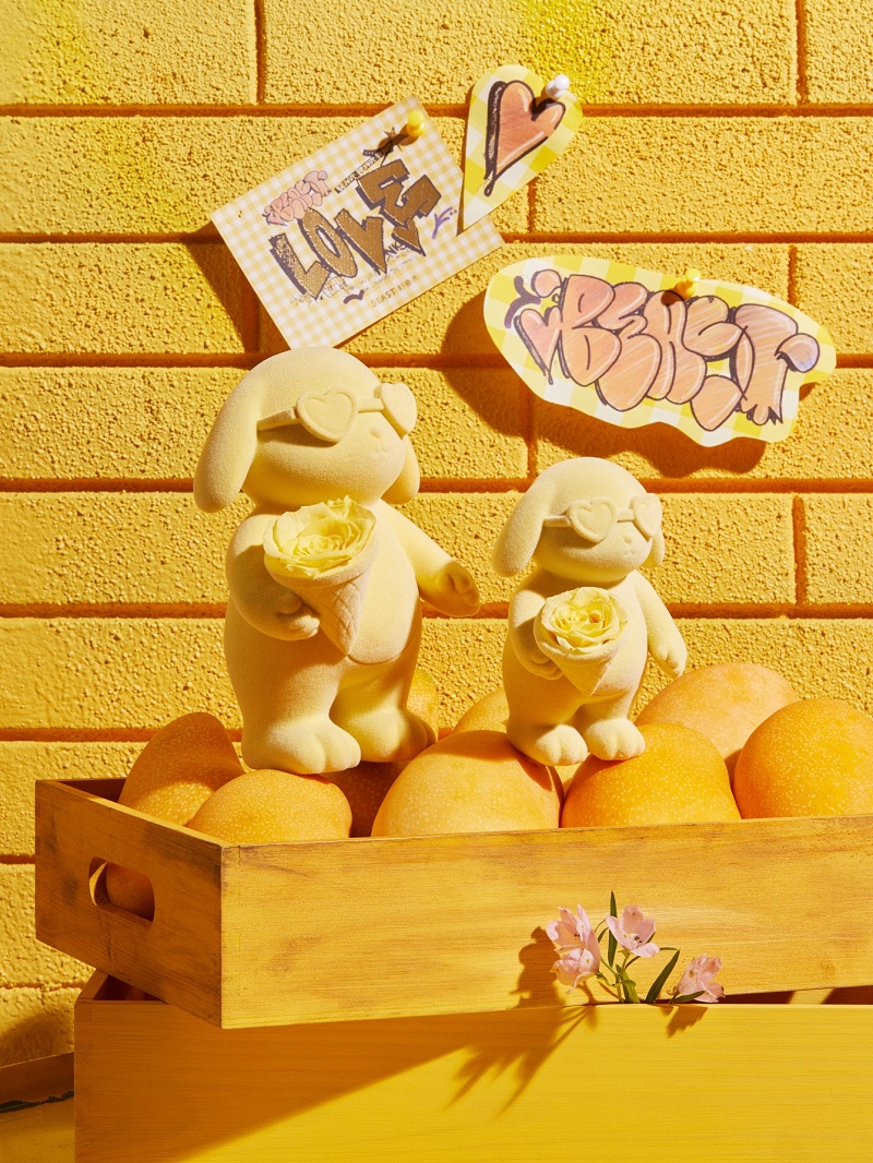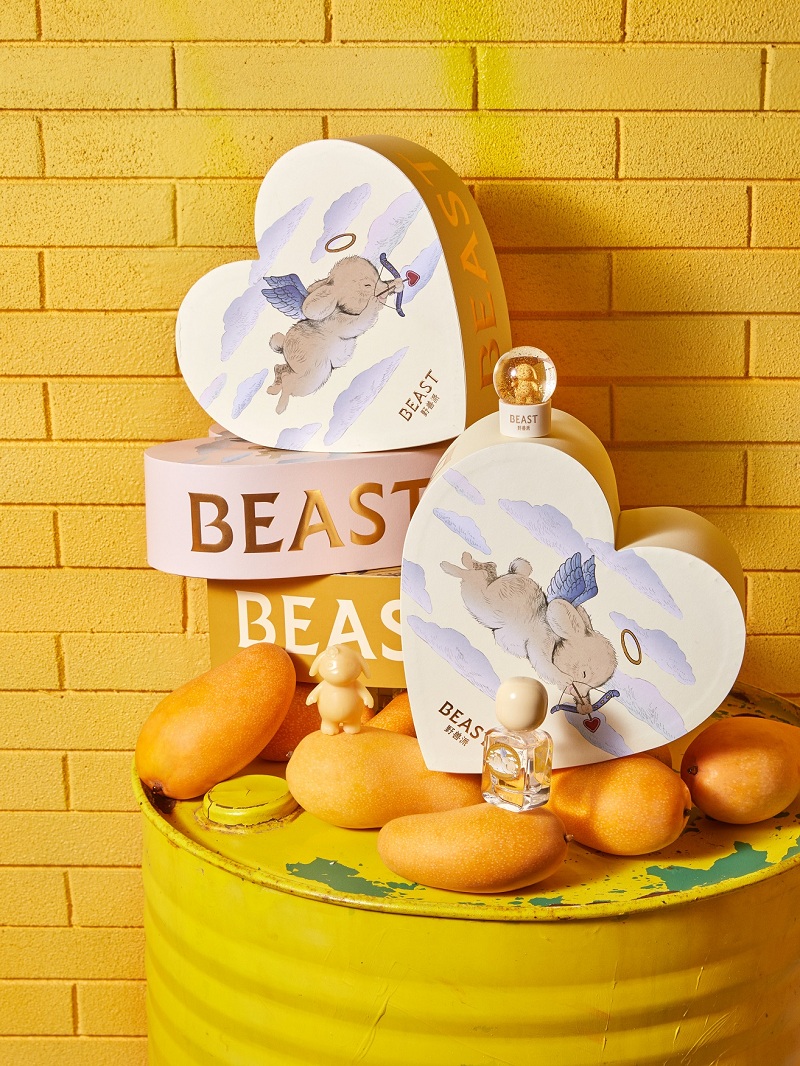 随新系列一起发布的,还有野兽派特别的新香“爱是芒目”——它是一款美食调香水,层次分明,芒果香气果香浓郁,绵柔香甜,闻起来是快乐的味道,让人上瘾。 一直备受欢迎的野兽派告白兔也推出了小鸡黄新色,戴上了墨镜和小花,为爱大声告白!
