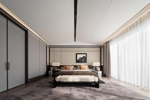 远古时期,自然环境的限制支配了人的活动范围,超越这一个个阶段后,如今真正能主宰人们生活的,便是人的独一无二的意志。艺术在这中间充当着审美隐喻的角色,无形之中沟通着人与人的品位共鸣。屋脊之下,繁杂之物被逐一剔除,空间中所余的皆是回归本真的物象,雅灰调从休憩区蔓延至书房、衣帽间,这让主卧空间时常被一种经典优雅的气质所笼罩。