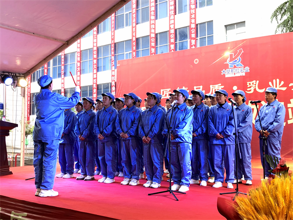 庆典现场,大垦的造梦者,时代的追梦人,大垦员工集体献唱歌曲《走向复兴》,热烈祝贺大垦那拉乳业升级改造竣工,也企盼大垦那拉的明天会更好!