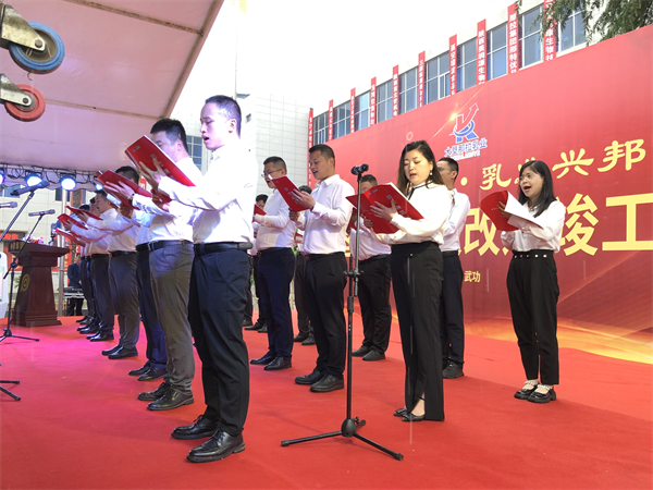 庆典现场,那拉集团员工代表齐声朗诵《那拉赋》,铿锵有力,言辞恳切,热情激昂,为陕西大垦那拉乳业升级改造竣工献上深深的祝福!