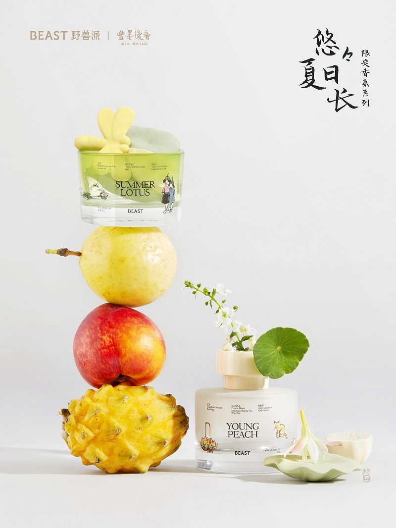 大师丰子恺出生在浙江桐乡,是一位天才画家,也是一位散文家、翻译家、教育家。他的漫画作品幽默诙谐,一派天真。美学家朱光潜形容他“从顶至踵,浑身都是个艺术家”。 在他的生花妙笔之下, 日常烟火,稚子顽童,淡淡愁绪,暖暖温情,一饮一啄,都是生活。野兽派从丰子恺描绘的夏天画面里汲取香调灵感,带来毛桃、夏荷、夜来香三款新香,伴您悠悠夏日长。