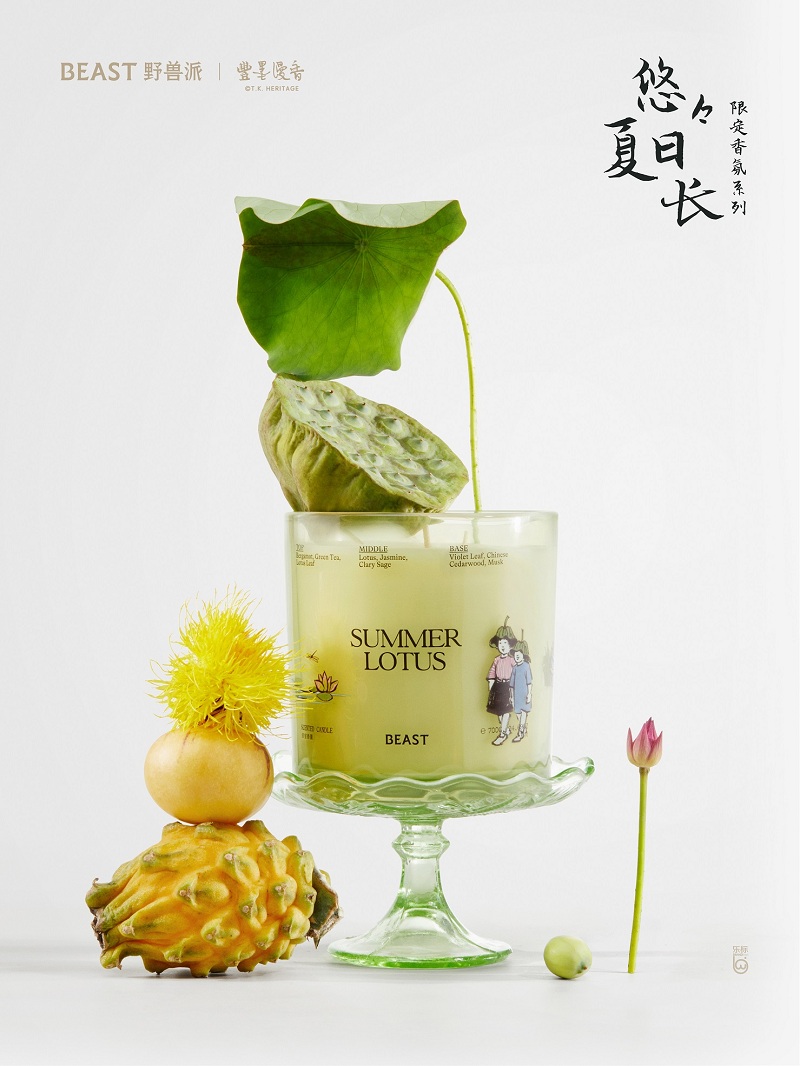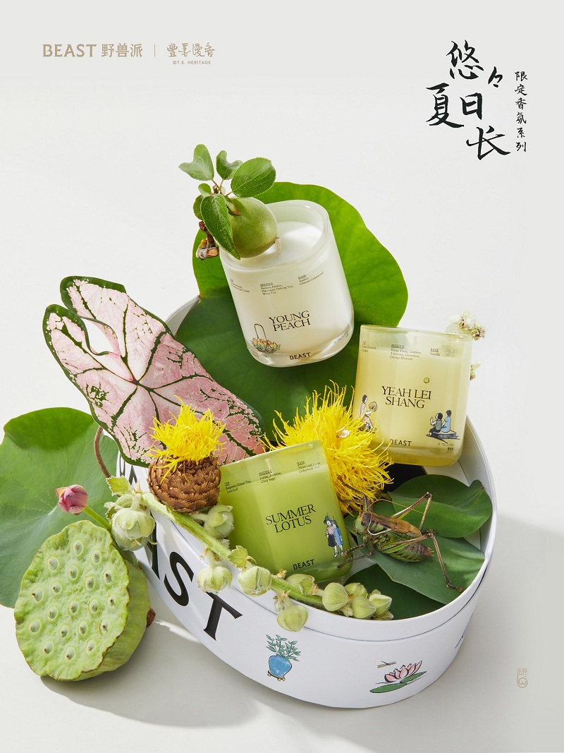 “小扇引微凉,悠悠夏日长。” 芒种节气,野兽派携手丰子恺,联名推出夏日悠悠长限定香氛系列,用香味勾勒大师笔下惬意悠闲、童趣稚气的夏天,让人沉浸于清新和愉悦之中。