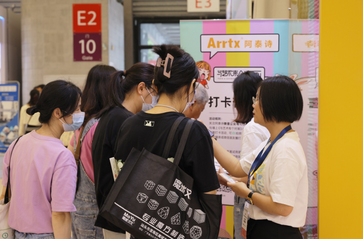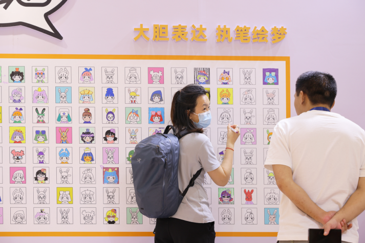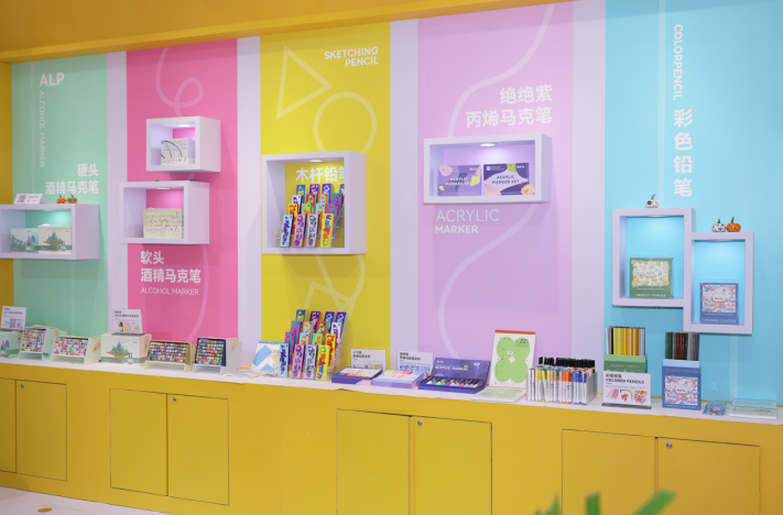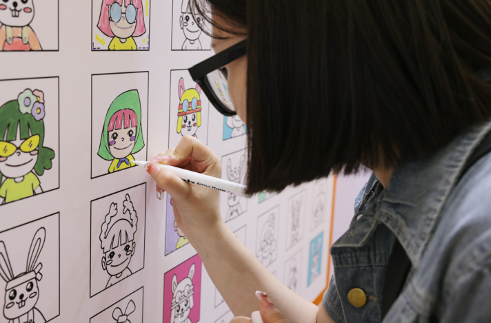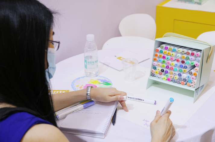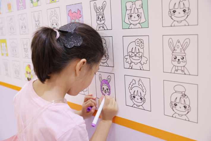 作为一个绘画爱好者的专属品牌,阿泰诗(Arrtx)此次展会以《与艺术来个对画》为主题,设立了一面可爱的卡通画涂色墙,卡通画的形象由阿泰诗的品牌IP Lila 以及Aggie演变而来。观展人士可以亲身体验阿泰诗马克笔绘画,执笔绘梦,自由涂色,用天马行空的着色融入无限想象,勇敢大胆的表达自己。
