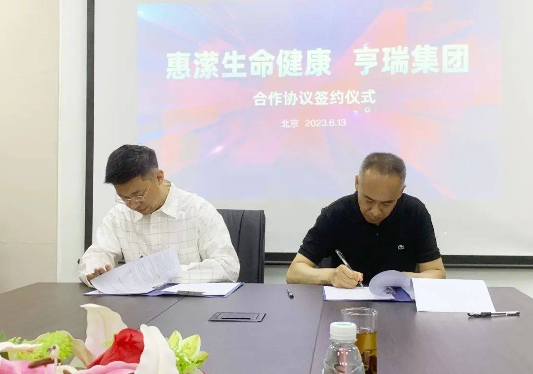 6月13日上午,惠潆生命健康与亨瑞集团合作签约仪式在惠潆生命健康北京总部举行。惠潆生命健康董事长张浩栋、常务副总邢爽、医学总监李江、渠道总监杨燕龙,亨瑞集团副总裁徐东、总裁办文倩倩等出席了签约仪式。