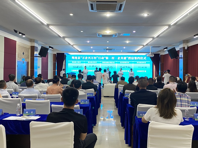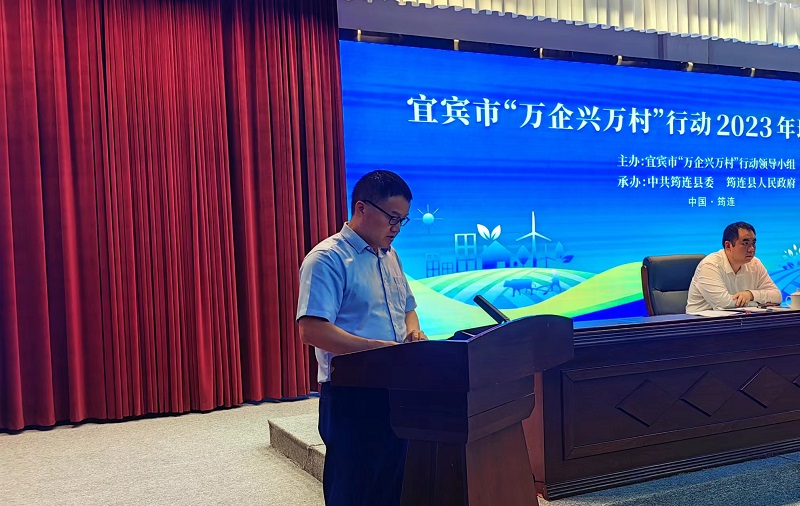 6月15日 ,宜宾市“万企兴万村”行动2023年现场工作推进会暨“宜商筠连行”活动在筠连县举行,推进会上,农行筠连支行与“万企兴万村”4个行动市级示范村和4个行动结对企业现场签订授信协议。