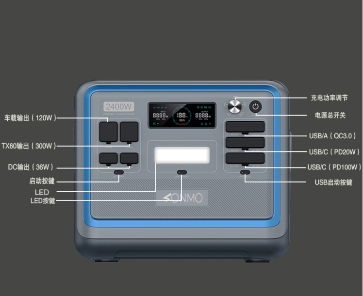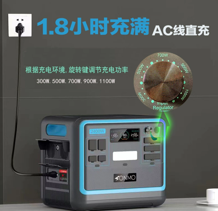 目前行业内开始追求快充,松魔电源已经开发出了充电速度可调,不仅可以快充,也可以更具使用环境调节到慢充档。众所周知,快充对电池寿命多多少少都会有点影响,但是有时急需使用,不得不让他快充充满电,但是多数时间我们不是太着急,松魔电源设计了一个旋钮,可以让你选择5种充电速度。