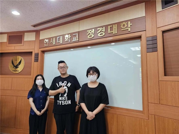 与延世大学全球英才学院办公室部长徐泰洪合影