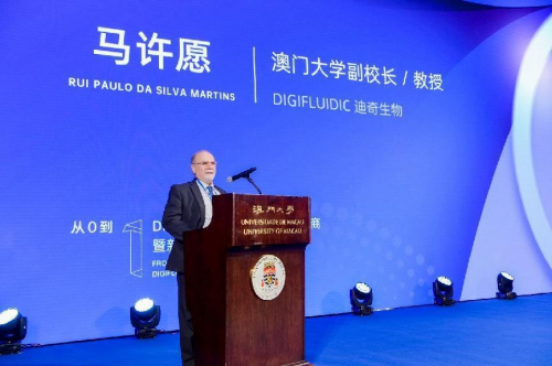 澳门大学副校长 马许愿教授表示,Digifluidic迪奇生物是澳门大学自建校以来首家技术转移成功孵化的科技企业,能在本场盛会见证“从0到1”发布的历史性时刻,感到十分骄傲和欣慰。Digifluidic的两位创始人陈天蓝博士、董铖博士,这两位澳门大学学子,真正实现了数字微流控的产业化,创造了一个突破性的进展和成功。